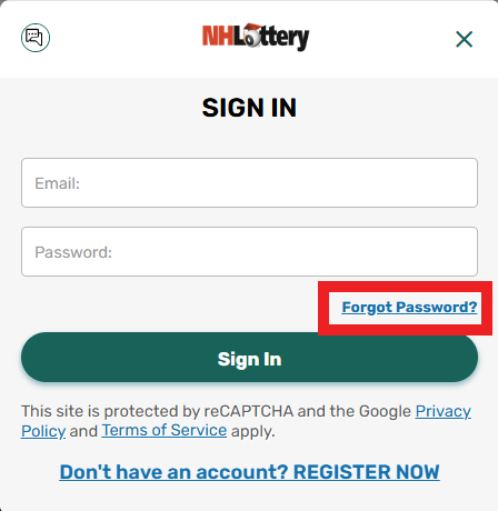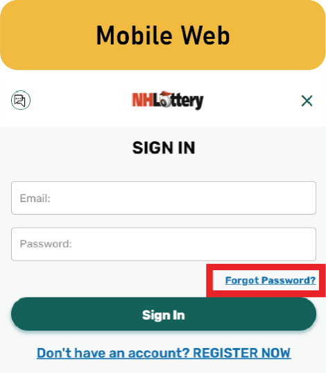 Sign in using the account icon in the upper-right portion of your screen. Select “Sign In” from the menu and enter your NH Lottery account credentials.