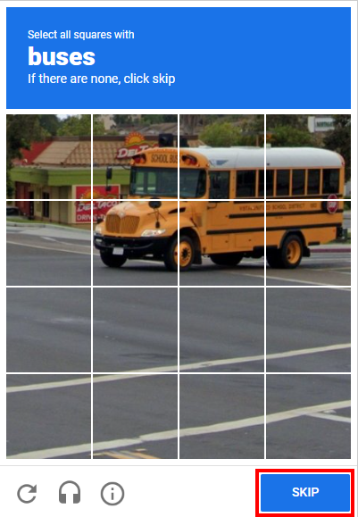 One more step! Complete the reCAPTCHA by selecting all images containing the specified object, then click VERIFY. If logging in from a different device in the future, you may need to complete another reCAPTCHA.