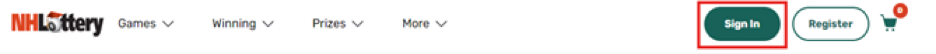 Sign in using the account icon in the upper-right portion of your screen. Select “Sign In” from the menu and enter your NH Lottery account credentials.