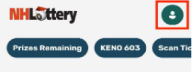 Click on “Sign In” in the upper right of your screen. Enter your NH Lottery account credentials, then select the account icon to expand the navigation menu.