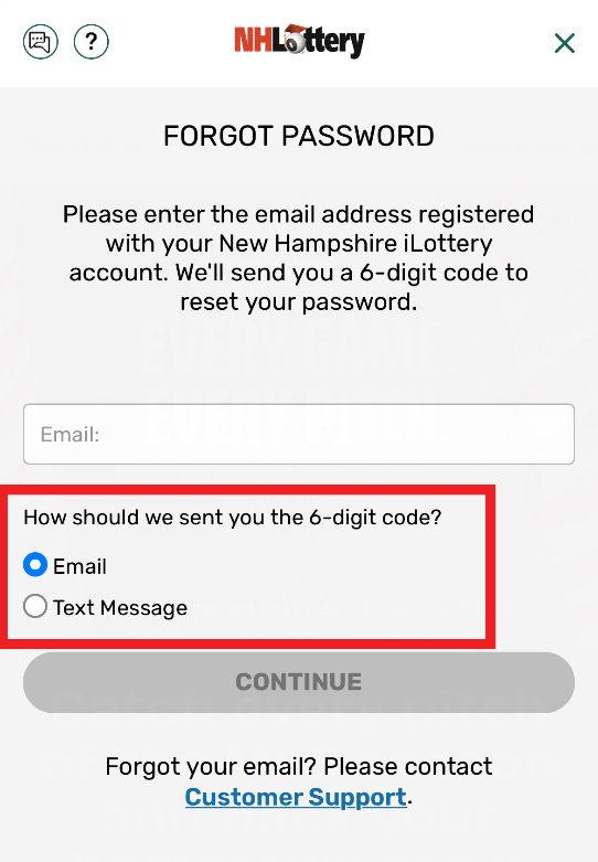 If Email is selected, enter your email address registered with your NH Lottery account.