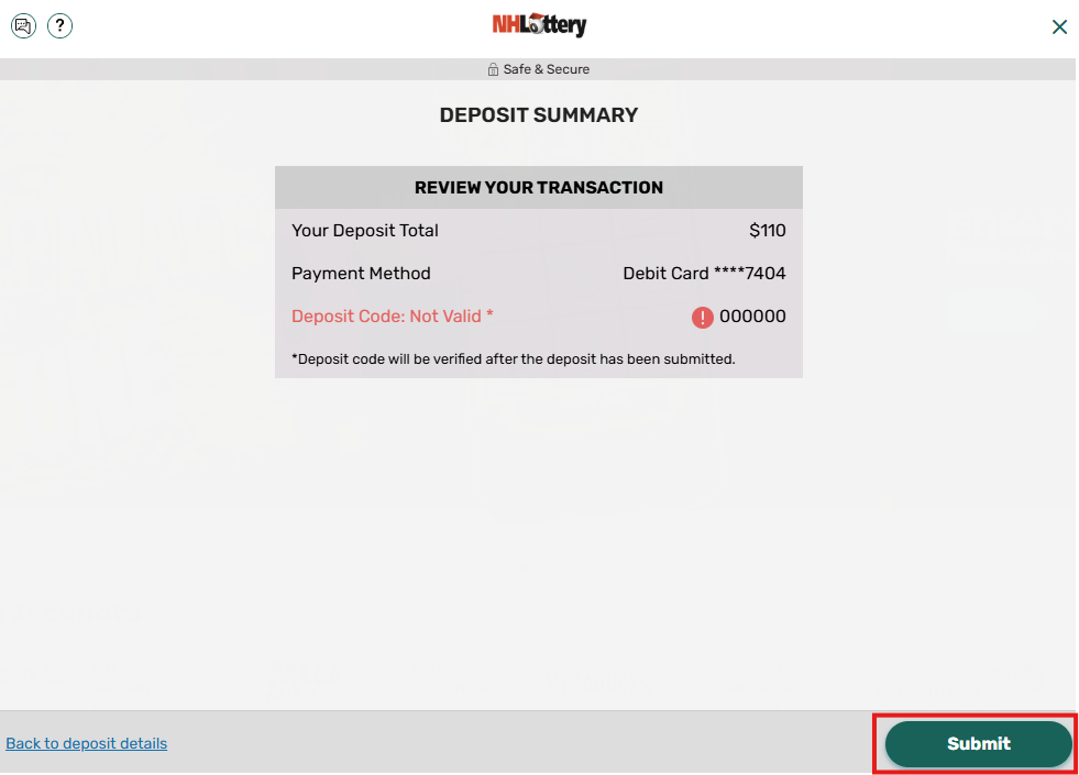 Note: If you wish to make changes, you can click BACK TO DEPOSIT DETAILS at the bottom of the screen before continuing.