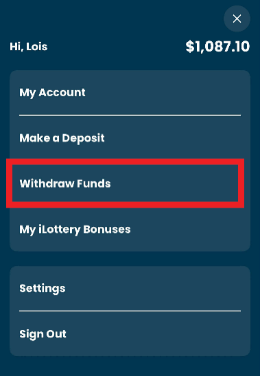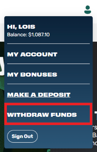 Click the account icon to expand the menu, then select “Withdraw Funds."