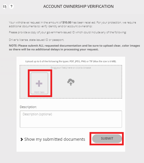 Note: If you did not complete the document upload step in your withdrawal, you can check the withdrawal request status and pick up where you left off. If you need to know how to check the withdrawal status, please follow these instructions.