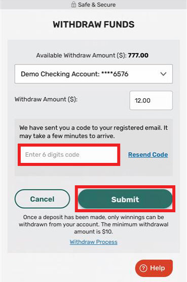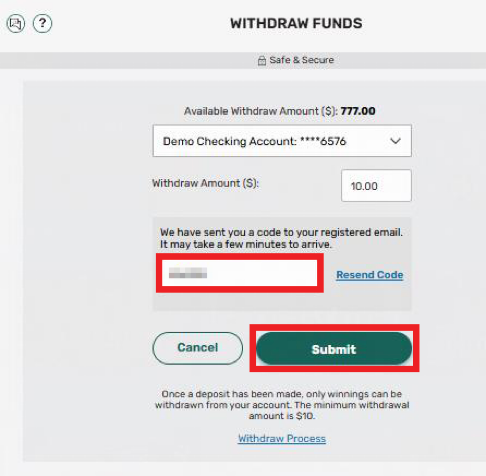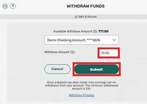 Note: You can only withdraw winnings and in whole numbers. The minimum withdrawal amount is $10.
