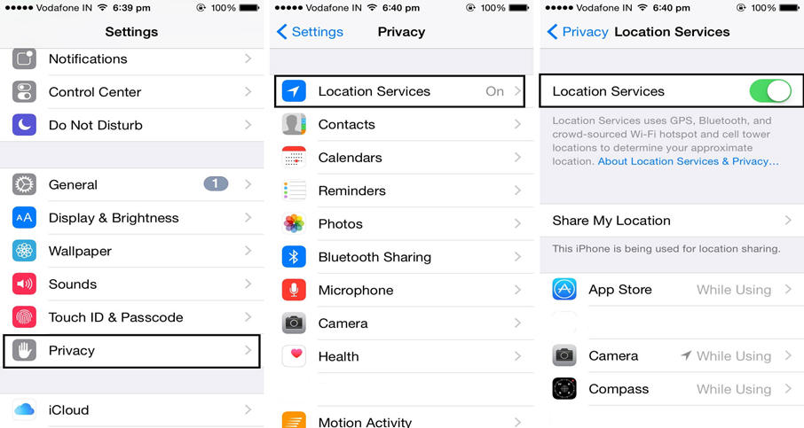 iOS device, go to Settings > Privacy > Location Services.